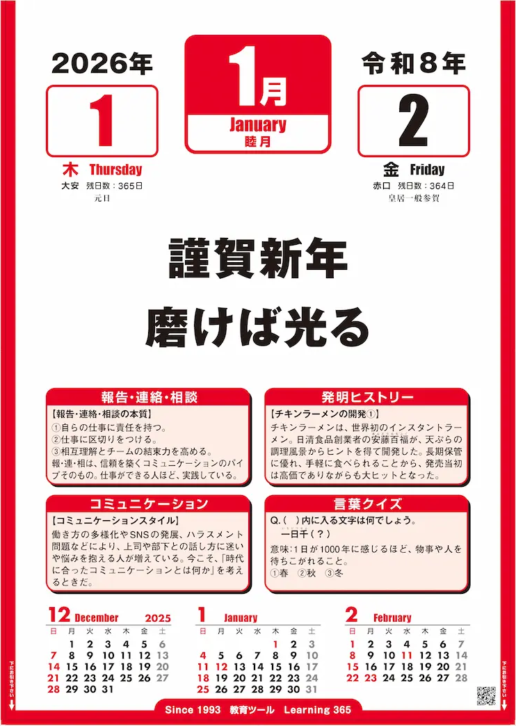 毎日ご活用頂けるように、カレンダー機能をつけた教育ツールです。
